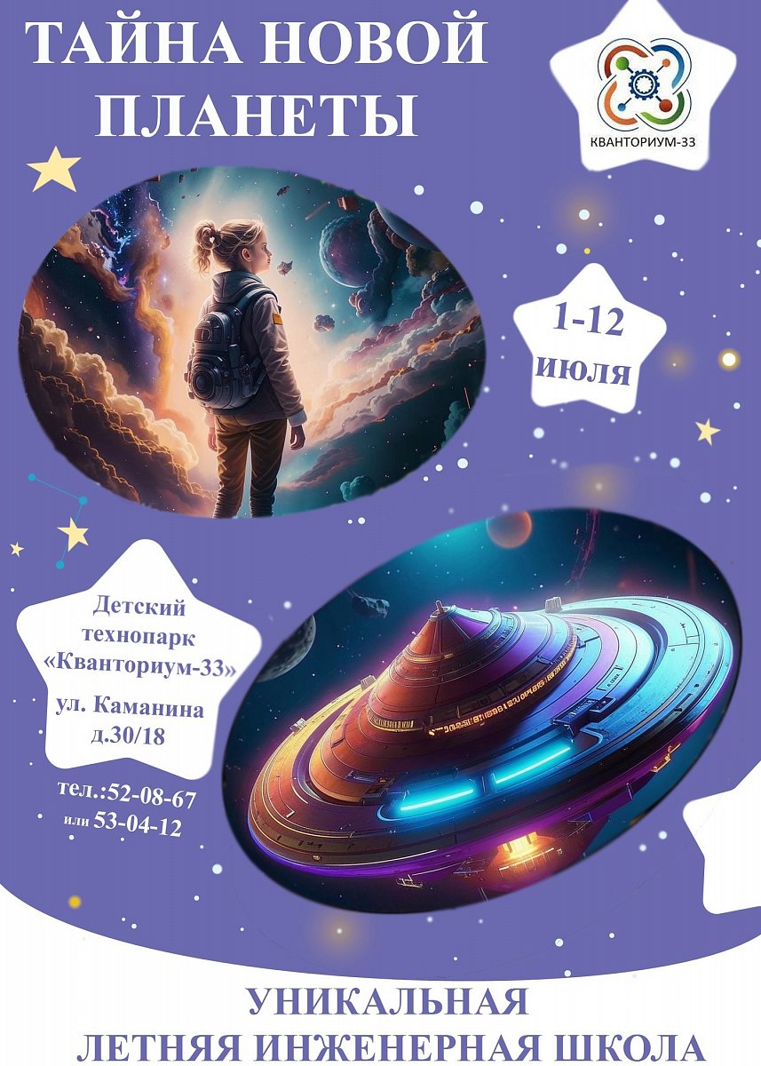 «Инженерные каникулы»: в детском технопарке «Кванториум-33» с 1 по 12 июля проходит летняя инженерная школа, для детей 10 лет и старше.